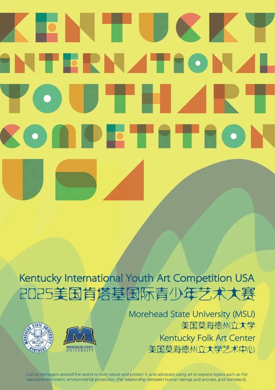 号召全世界青少年爱自然、保护自然、倡导用艺术表达自然环境、环境保护、人与动物及家园等题目。