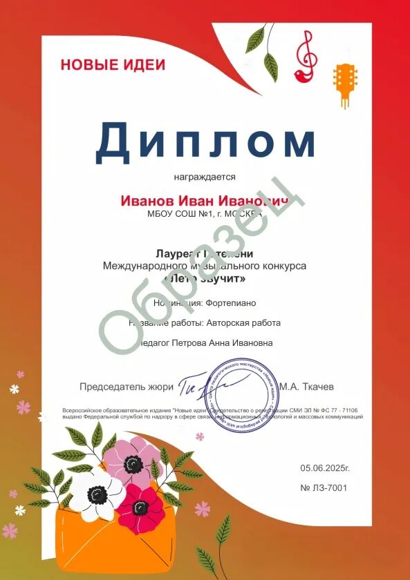 自 2013 年以来,“新理念”卓越教学中心一直在俄教育刊物“新思想”的基础上主办针对全年龄段的国际、全俄奥林匹克竞赛、测验和竞赛。编号 FS 77 - 71106。所有的文凭均符合现行联邦国家教育标准以及俄罗斯联邦教育和科学部 2014 年 4 月 7 日第 276 号命令“关于批准从事教育活动的组织的教学人员认证程序”